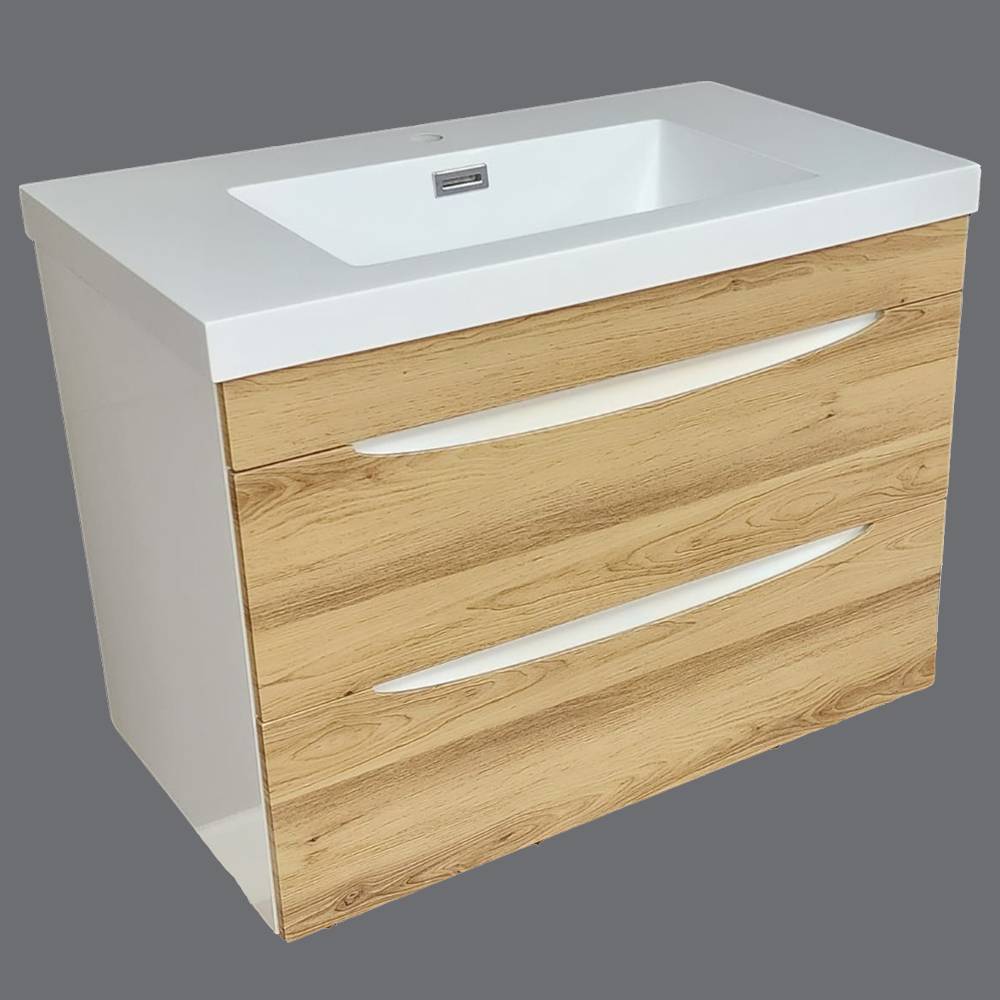 Upgrade your bathroom with the Alaska 800 Wall Hung Cabinet & Resin Basin Combo, designed to combine modern style with practical storage. Because this unit mounts to the wall, it creates a sleek floating look while freeing up valuable floor space. In addition, the two drawers keep your essentials neatly organised and within easy reach.