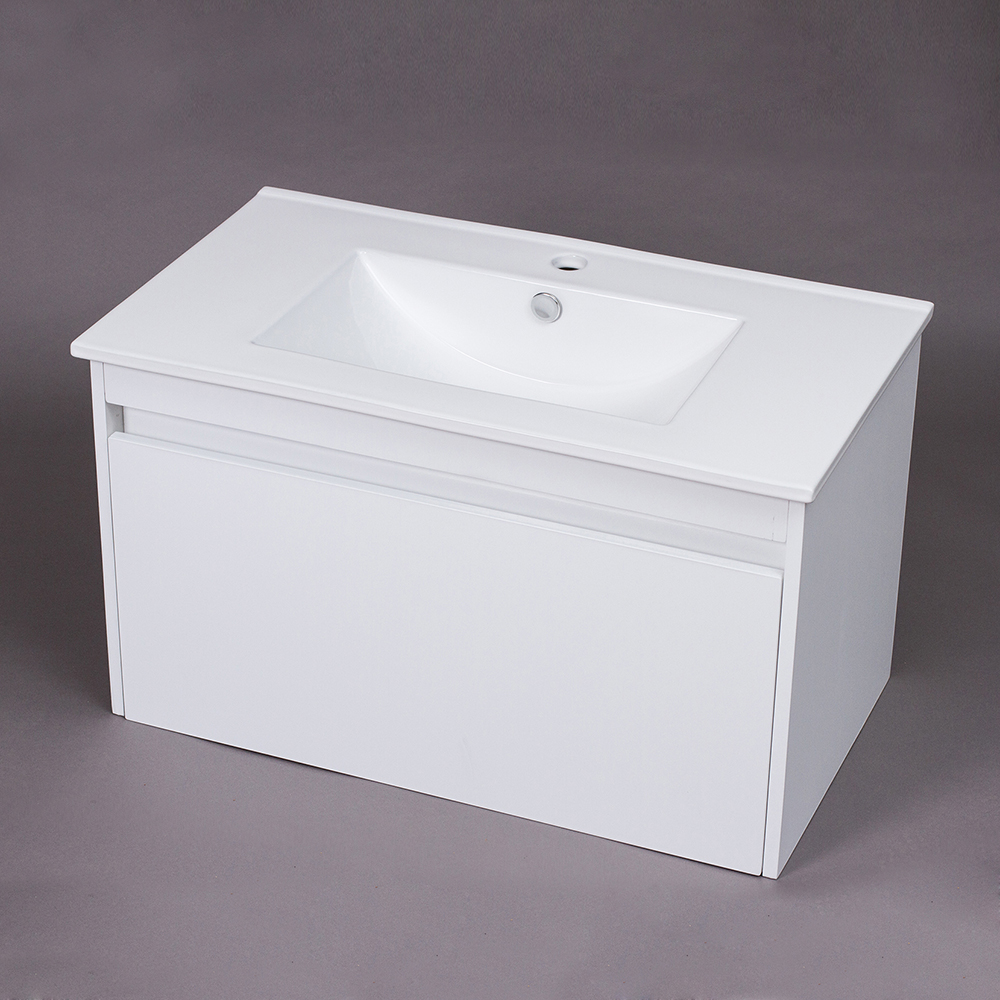 The Penny 800 features a minimalist wall-hung cabinet design that enhances both style and functionality. Its MDF construction with PVC wrap ensures durability and moisture resistance, while the white high gloss finish pairs effortlessly with a wide range of bathroom styles. In addition, the finger grip handle design provides a seamless, modern look with practical ease of use.